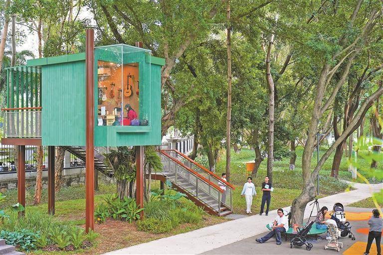 r更值得关注的是,树屋琴房并非孤立的景观,而是上步绿廊公园带“公园+”乐活经济示范区的一部分,从酷炫的骑行户外“充电站”,到科技感拉满的机器人调香,再到一站式包揽吃喝玩乐购的休闲区,这片区域的焕新,展现的是深圳对“城市公共空间”的全新思考:公共空间不该是单一功能的堆砌,而应是多元体验的融合,是让每个人都能找到属于自己的“快乐角落”。这种“全龄友好、多元融合”的设计理念,让公园成为“所有人的欢乐场”——就像童话世界里,每个角色都能找到自己的乐园。